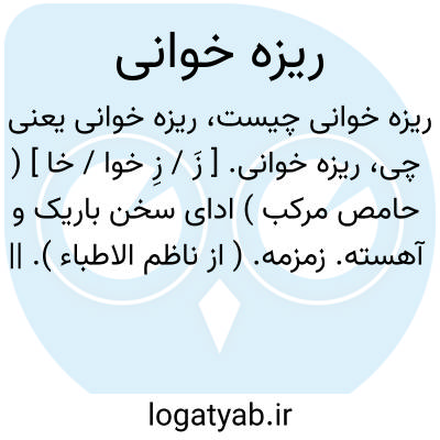 آهسته و نرم سخن گفتن، زمزمه کردن: چنان به زیر زبان بشکنم ترانهٴ عشق / که عندلیب شود داغ ریزه خوانی من (سالک یزدی: لغت نامه: ریزه خوانی ).