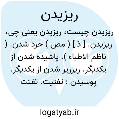 بریزید و هم در زمان داد جان.فردوسی.تن او را بجهت اعتبار از دو جانب بیاویختند تا بپوسید و بریزید. ( جامعالتواریخ رشیدی ). شماریزیده شوید و این درخت وجود شما افشانده شود. ( کتاب المعارف ). سنگی از منجنیق بجست و در هوا ریزیده شدو از آنجا سنگکی بس کوچک بر سر ابوالقاسم آمد و بشکست. ( ترجمه تاریخ قم ص 73 ). || گداخته شدن. || حل شدن. || افشان شدن و پراکنده شدن. ( ناظم الاطباء ):