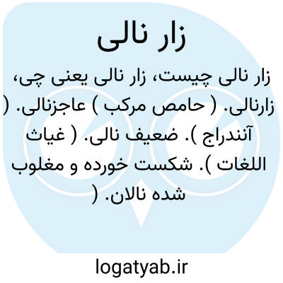 زارنالی. ( حامص مرکب ) عاجزنالی. ( آنندراج ). ضعیف نالی. ( غیاث اللغات ). شکست خورده و مغلوب شده نالان. ( ناظم الاطباء ):