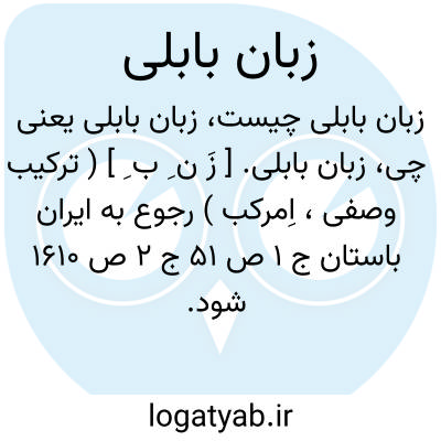 زبان بابلی. [ زَ ن ِ ب ِ ] ( ترکیب وصفی، اِمرکب ) رجوع به ایران باستان ج 1 ص 51 ج 2 ص 1610 شود.
