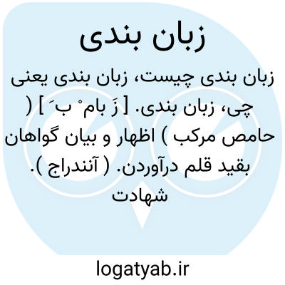زبان بندی. [ زَ بام ْ ب َ ] ( حامص مرکب ) اظهار و بیان گواهان بقید قلم درآوردن. ( آنندراج ). شهادت شاهد. || افسونگری. ( ناظم الاطباء ). عملی که جادویان و دعانویسان ادعا کنند که دشمنان را از گفتارهای بد نزد پادشاه یا شوهر و غیره بازدارد. عمل سحری که دشمنان را از غیبت و بدگویی کسی بازدارد. || زبان بند شدن.
