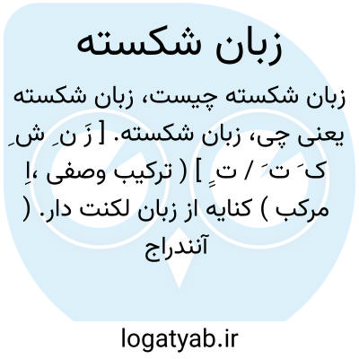 زبان شکسته. [ زَ ن ِ ش ِ ک َ ت َ / ت ِِ ] ( ترکیب وصفی،اِ مرکب ) کنایه از زبان لکنت دار. ( آنندراج ). کنایه از زبان الکن. ( مجموعه مترادفات ص 191 ):