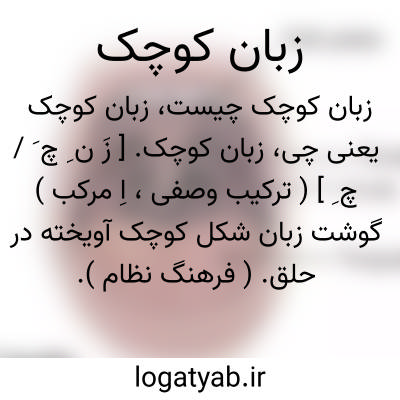 زبان کوچک. [ زَ ن ِ چ َ / چ ِ ] ( ترکیب وصفی، اِ مرکب ) گوشت زبان شکل کوچک آویخته در حلق. ( فرهنگ نظام ). ملاز. ملازه. کده. لهات. کام.