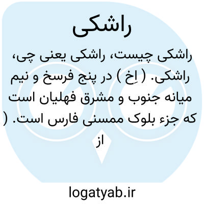 راشکی. ( اِخ ) در پنج فرسخ و نیم میانه جنوب و مشرق فهلیان است که جزء بلوک ممسنی فارس است. ( از فارسنامه ناصری گفتار دوم ص 304 ). و رجوع به راشک بلوط جهانه شود.