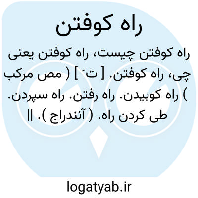 راه کوفتن. [ ت َ ] ( مص مرکب ) راه کوبیدن. راه رفتن. راه سپردن. طی کردن راه. ( آنندراج ). || هموارو مستوی کردن راه. تسطیح کردن راه. صاف کردن راه.
