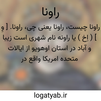 راونا. [ وِ ] ( اِخ ) یا راونه نام شهری است زیبا و آباد در استان اوهویو از ایالات متحده امریکا واقع در 207هزارگزی شمال خاوری «کولومبوس ». این شهر دارای کارخانه های بسیار و تجارت حبوب و روغن و غیره میباشد. جمعیت آن برطبق آمار سال 1950م. 9857 تن است. این شهر بسال 1852م. بنا شد و در سال 1912م. بصورت یک شهر درآمد. ( از قاموس الاعلام ترکی ) ( دائرة المعارف بریتانیکا ).
