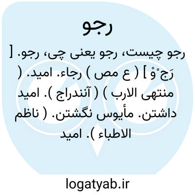 رجو. [ رَج ْوْ ] ( ع مص ) رجاء. امید. ( منتهی الارب ) ( آنندراج ). امید داشتن. مأیوس نگشتن. ( ناظم الاطباء ). امید داشتن. ( تاج المصادر بیهقی ) ( آنندراج ) ( منتهی الارب ) ( از اقرب الموارد ). و رجوع به رُجُوّ و رجاو رجاء و رجاوة و رجاة و مرجاة شود. || ترسیدن، قوله تعالی: ما لکم لاترجون وقاراً. ( قرآن 13/71 )؛ ای لاتخافون عظمةاﷲ. ( از ناظم الاطباء ). ترسیدن. ( تاج المصادر بیهقی ). ترسیدن. یقال: «لقیت هولاً ما رجوته ». ( از اقرب الموارد ). و رجوع به رَجاء و رُجُوّ و رجاوة و رجاءة و رجاة و مرجاة شود.