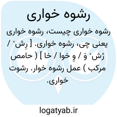 رشوه خواری. [ رِش ْ / رُش ْ وَ / وِ خوا / خا ] ( حامص مرکب ) عمل رشوه خوار. رشوت خواری. ارتشاء. ( یادداشت مؤلف ). عمل رشوه خوار. رشوه گیری. رشوه خوری. ( فرهنگ فارسی معین ). و رجوع به رشوت خوار و رشوه خوار و رشوت خواری شود.