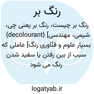 {decolourant} [شیمی، مهندسی بسپار علوم و فنّاورى رنگ] عاملی که سبب از بین رفتن یا سفید شدن رنگ می شود