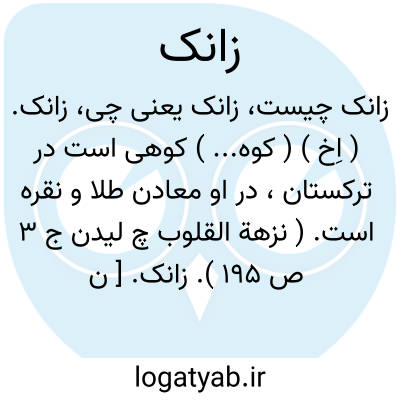 زانک. ( اِخ ) ( کوه... ) کوهی است در ترکستان، در او معادن طلا و نقره است. ( نزهة القلوب چ لیدن ج 3 ص 195 ).