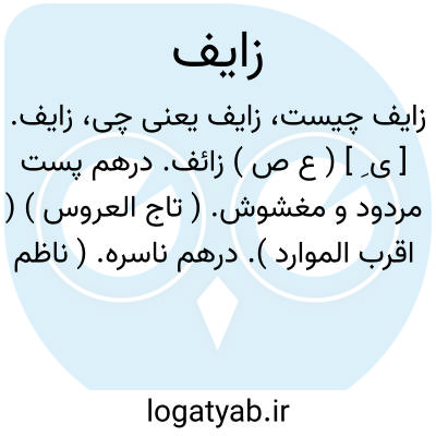 زایف. [ ی ِ ] ( ع ص ) زائف. درهم پست مردود و مغشوش. ( تاج العروس ) ( اقرب الموارد ). درهم ناسره. ( ناظم الاطباء ) ( دهار ). || کاسد مقابل رایج. ج، زیّف و آنرا زیف نیز گویند. ج، زیوف. ( تاج العروس ):