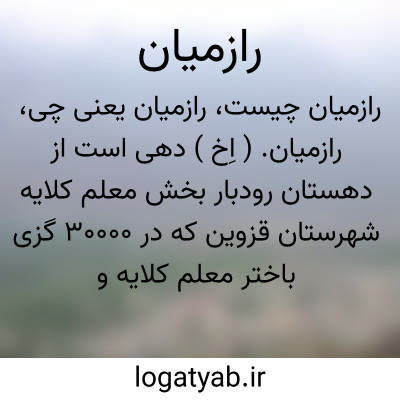 رازمیان. ( اِخ ) دهی است از دهستان رودبار بخش معلم کلایه شهرستان قزوین که در 30000 گزی باختر معلم کلایه و 42000 گزی راه عمومی واقع است. محلی است کوهستانی، سردسیر و سکنه آن 86 تن میباشند. آب آن از رودخانه تأمین میشود و محصول آن غلات و برنج و پنبه و شغل اهالی آن زراعت و کرباس بافی است. و راه مالرو دارد. ( از فرهنگ جغرافیایی ایران ج 1 ).