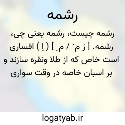 رشمه. [ رَ م َ / م ِ ] ( اِ ) افساری است خاص که از طلا ونقره سازند و بر اسبان خاصه در وقت سواری بندند، و بعضی گویند رشمه ریسمان آن زنجیر است. ( لغت محلی شوشتر، نسخه خطی کتابخانه مؤلف ). رسن بلند مخصوص اسب. چیزی است که بر دهان اسب نهند. ( یادداشت مؤلف ).