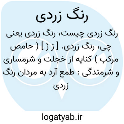 ۲. [مجاز] شرمندگی: طمع آرد به مردان رنگ زردی / طمع را سر ببر گر مرد مردی (ناصرخسرو: لغت نامه: رنگ زردی ).