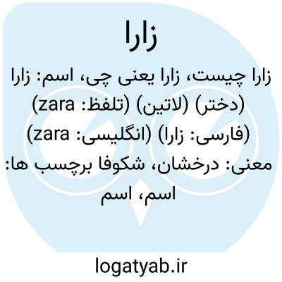 اسم: زارا (دختر) (لاتین) (تلفظ: zara) (فارسی: زارا) (انگلیسی: zara)
