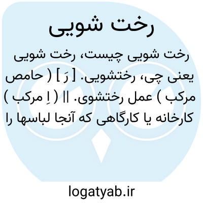 ۱ - عمل و شغل رخت شویی. ۲ - ( اسم ) دکان رخت شویی. یا ماشین رخت شویی دستگاهی که به وسیله نیروی الکتریسیته کار کند و عمل رخت شویی را انجام دهد.