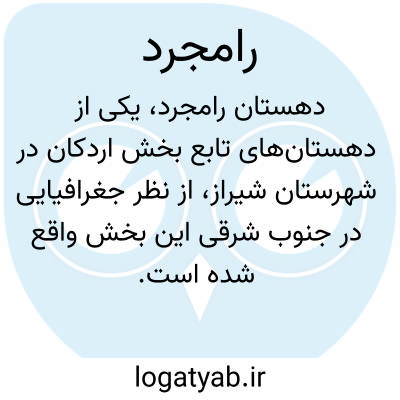 رامجرد. [ ج ِ ] ( اِخ ) قریه ای است از قراء فارس که عبداﷲبن معمر در جنگ با عبداﷲبن عامر در آنجا کشته شده و در یکی از باغهای آن بخاک سپرده شده است. ( از معجم البلدان ج 4 ).