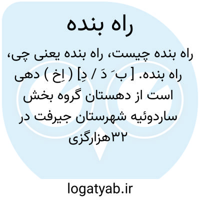 راه بنده. [ ب َ دَ / دِ] ( اِخ ) دهی است از دهستان گروه بخش ساردوئیه شهرستان جیرفت در 32هزارگزی شمال ساردوئیه و 18هزارگزی باختری راه مالرو ساردوئیه به راین. هوای آن سردسیر و کوهستانی و سکنه آن 50 تن میباشد. آب ده از رودخانه تأمین میشود و محصول عمده آن غلات و حبوب، و پیشه مردم کشاورزی است. ( از فرهنگ جغرافیایی ایران ج 8 ).