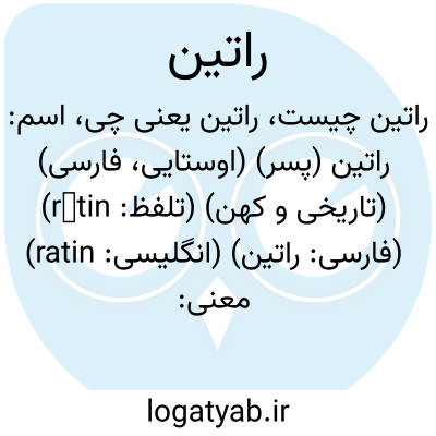 اسم: راتین (پسر) (اوستایی، فارسی) (تاریخی و کهن) (تلفظ: rātin) (فارسی: راتین) (انگلیسی: ratin)