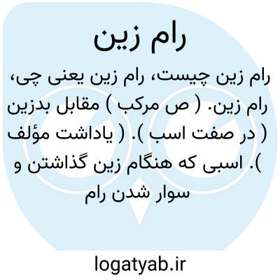 رام زین. ( ص مرکب ) مقابل بدزین ( در صفت اسب ). ( یاداشت مؤلف ). اسبی که هنگام زین گذاشتن و سوار شدن رام و نرم است: