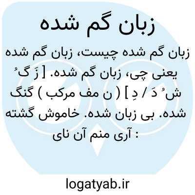 زبان گم شده. [ زَ گ ُ ش ُ دَ / دِ ] ( ن مف مرکب ) گنگ شده. بی زبان شده. خاموش گشته:
