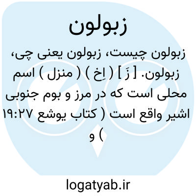 زبولون. [ زَ ] ( اِخ ) ( منزل ) اسم محلی است که در مرز و بوم جنوبی اشیر واقع است ( کتاب یوشع 19:27 ) و دور نیست که همان شعب حالیه باشد. و نسل ایشان را زبولونیان گویند. ( کتاب داوران 12:11 ) ( از قاموس کتاب مقدس ). رجوع به ماده بعد شود.