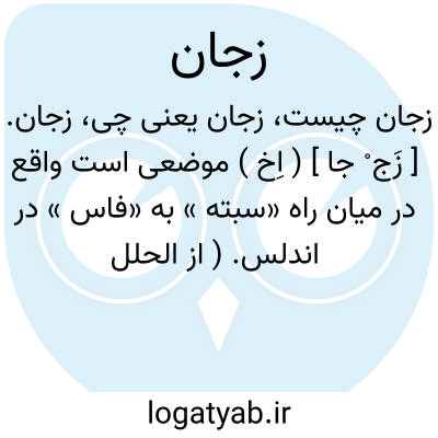 زجان. [ زَج ْ جا ] ( اِخ ) موضعی است واقع در میان راه «سبته » به «فاس » در اندلس. ( از الحلل السندسیه ج 1 ص 68 ).