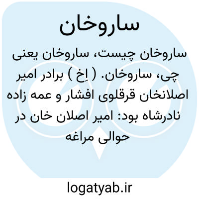 ساروخان. ( اِخ ) برادر امیر اصلانخان قرقلوی افشار و عمه زاده نادرشاه بود: امیر اصلان خان در حوالی مراغه از ابراهیم خان [ شاه ] شکست خورد و به کوهستان قراجه داغ پناه برد و بوسیله کاظم خان قراجه داغی دستگیر و تسلیم ابراهیم خان شد. و با ساروخان به قتل رسید. رجوع به مجمل التواریخ گلستانه ص 29 شود.