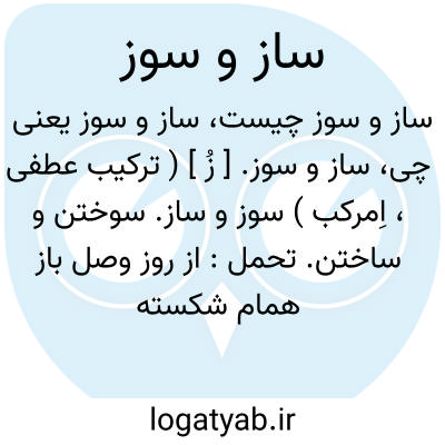 ساز و سوز. [ زُ ] ( ترکیب عطفی، اِمرکب ) سوز و ساز. سوختن و ساختن. تحمل: