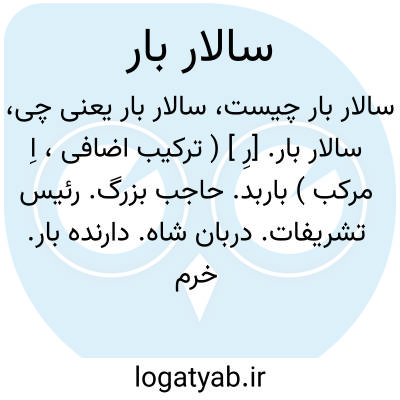 سالار بار. [رِ ] ( ترکیب اضافی، اِ مرکب ) باربد. حاجب بزرگ. رئیس تشریفات. دربان شاه. دارنده بار. خرم باش. پرده دار. حاجب مخصوص. رئیس دربار. ( ناظم الاطباء ). رئیس تشریفات. ( اشتینگاس ص 642 ) آنکه پذیرائی واردان بر شاه را بعهده دارد و آنان را بحضور شاه برد: