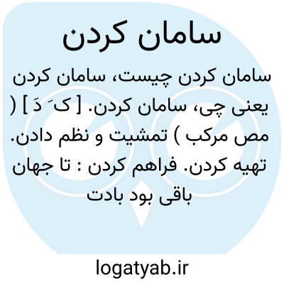 سامان کردن. [ ک َ دَ ] ( مص مرکب ) تمشیت و نظم دادن. تهیه کردن. فراهم کردن: