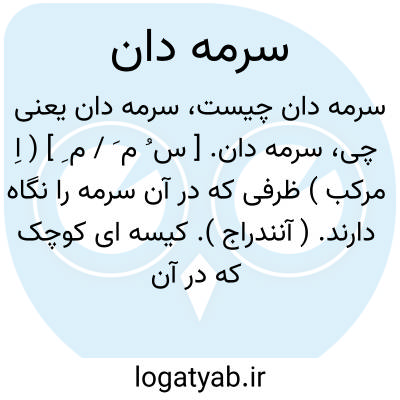 سرمه دان. [ س ُ م َ / م ِ ] ( اِ مرکب ) ظرفی که در آن سرمه را نگاه دارند. ( آنندراج ). کیسه ای کوچک که در آن سرمه ریزند. ( فرهنگ فارسی معین ):