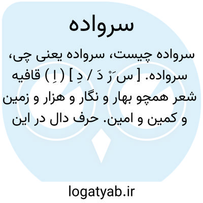 سرواده. [ س َرْ دَ / دِ ] ( اِ ) قافیه شعر همچو بهار و نگار و هزار و زمین و کمین و امین. حرف دال در این لغت و لغت ماقبل بنا بر قاعده کلی نقطه دار است. ( برهان ). قافیه باشد. ( اوبهی ). قافیه شعر. ( رشیدی ):