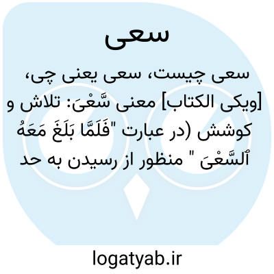 [ویکی الکتاب] معنی سَّعْیَ: تلاش و کوشش (در عبارت "فَلَمَّا بَلَغَ مَعَهُ ﭐلسَّعْیَ " منظور از رسیدن به حد سعی و کوشش رسیدن به آن حد از عمر است که آدمی عادتاً میتواند برای حوائج زندگی خود کوشش کند و این همان سن بلوغ است )