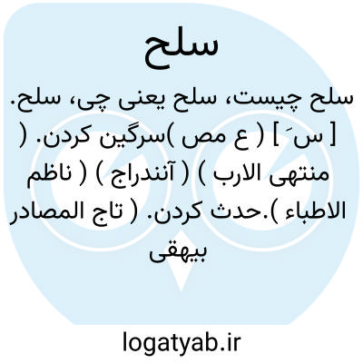 سلح. [س ِ ل َ ] ( اِ ) مخفف سلاح، اسباب و آلات جنگ. ( منتهی الارب ) ( آنندراج ). ساز حرب. ( ناظم الاطباء ):