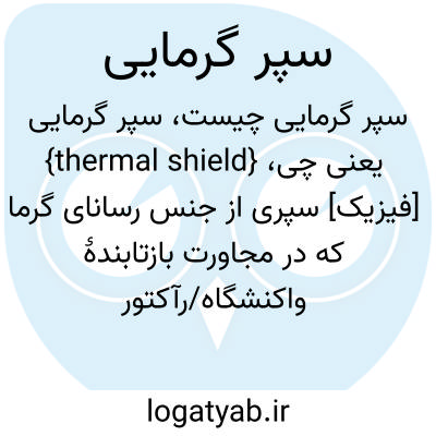 {thermal shield} [فیزیک] سپری از جنس رسانای گرما که در مجاورت بازتابندۀ واکنشگاه/رآکتور هسته ای قرار می گیرد تا تابش و نوترون های گرمایی را در خود جذب کند