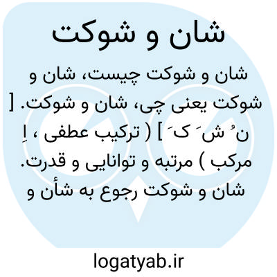 شان و شوکت. [ ن ُ ش َ ک َ ] ( ترکیب عطفی، اِ مرکب ) مرتبه و توانایی و قدرت. شان و شوکت رجوع به شأن و شوکت شود.