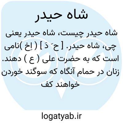 شاه حیدر. [ ح َ دَ ] ( اِخ )نامی است که به حضرت علی ( ع ) دهند. زنان در حمام آنگاه که سوگند خوردن خواهند کف دست بر زمین صحن حمام زنند و گویند به این شاه حیدر. ( یادداشت مؤلف ). زنان دو کف دست را بقوت بر زمین حمام زنند و گویند: به این شاه حیدر. یا: قسم به این شاه حیدر بمعنی قسم به این حمام. ( یادداشت مؤلف ). رجوع به علی ( ع ) شود.