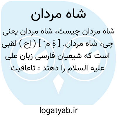 لقبی است که شیعیان فارسی زبان علی علیه السلام را دهند: تا عاقبت الامر بجائی رسید که بعد از رحلت حضرت رسول ( ص ) بر شاه مردان خروج کرد.