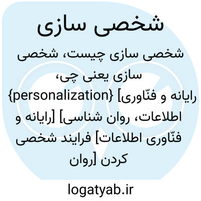 {personalization} [رایانه و فنّاوری اطلاعات، روان شناسی] [رایانه و فنّاوری اطلاعات] فرایند شخصی کردن [روان شناسی] تغییر یا انطباق امری به منظور آنکه برای شخصی معین مناسب تر یا بامعناتر شود