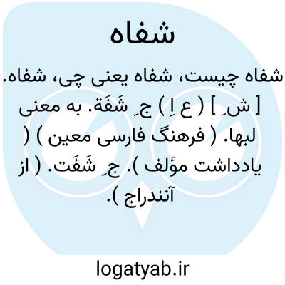 شفاه. [ ش ِ ] ( ع اِ ) ج ِ شَفَة. به معنی لبها. ( فرهنگ فارسی معین ) ( یادداشت مؤلف ). ج ِ شَفَت. ( از آنندراج ). ج ِ شفة. ( دهار ) ( اقرب الموارد ). لبها، و آن جمع شفت است که دراصل شفة بوده. ( غیاث اللغات ). و رجوع به شفة شود.