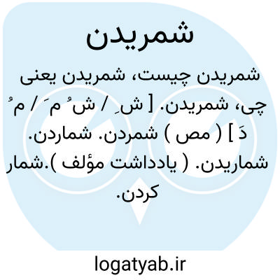 شمریدن. [ ش ِ / ش ُ م َ / م ُ دَ ] ( مص ) شمردن. شماردن. شماریدن. ( یادداشت مؤلف ).شمار کردن. رجوع به شمردن، شماردن و شماریدن شود.