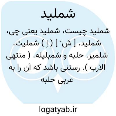 شملید. [ ش َ ] ( اِ ) شملیت. شلمیز. حلبه و شمبلیله. ( منتهی الارب ). رستنی باشد که آن را به عربی حلبه گویند. ( از برهان ) ( آنندراج ). حلبه. ( نصاب الصبیان ). شملیز. شنبلیت. شنبلید. شمبلید. حلبة. شنبلیله. ( یادداشت مؤلف ). رجوع به شملیت و مترادفات دیگرشود. || گلی زرد و خوشبو. ( منتهی الارب ) ( از برهان ).