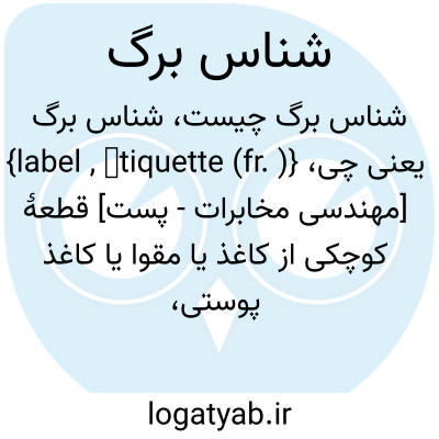 {label , étiquette (fr. )} [مهندسی مخابرات - پست] قطعۀ کوچکی از کاغذ یا مقوا یا کاغذ پوستی، با چسب یا بدون چسب، که از آن برای دریافت اطلاعات مربوط به خدمات پُستی، شامل نشانی و مُهرهای پرداخت و هزینه های پُستی، استفاده می کنند