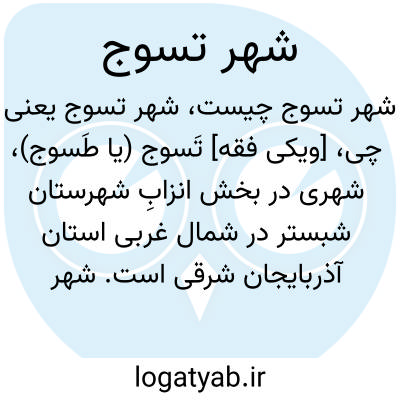 [ویکی فقه] تَسوج (یا طَسوج)، شهری در بخش انزابِ شهرستان شبستر در شمال غربی استان آذربایجان شرقی است.