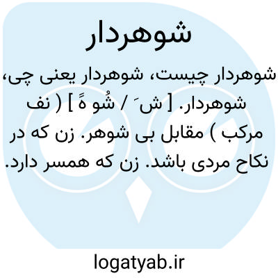 شوهردار. [ ش َ / شُو هََ ] ( نف مرکب ) مقابل بی شوهر. زن که در نکاح مردی باشد. زن که همسر دارد.