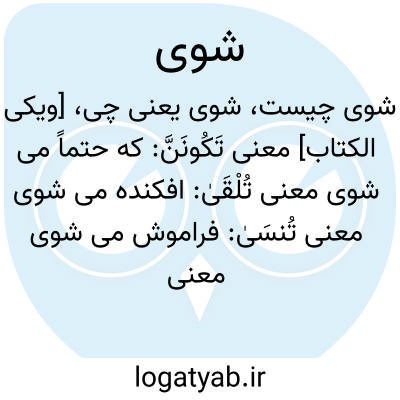 بریان کردن. واو آن بیاء قلب میشود در اقرب گوید «شوی اللحم شیّاً: جعله شواء» ایضاً به معنی گرم کردن آب آمده است. یعنی اگر فریاد رسی بخحواهند به آبی چون مس گداخته کمکشان دهند که چهرهها را میسوزاند و بریان میکند.. شوی را از اطراف بدن گفتهاند مثل دست و پا و سر و نیز پوست سر گفتهاند واحد آن شواة است یعنی نه جهنّم زبانه خالص است که پوست سر یا اطراف بدن را میکند. شوی که بر وزن فتی است به معنی مال رذیل نیز آمده است (مجمع اقرب).