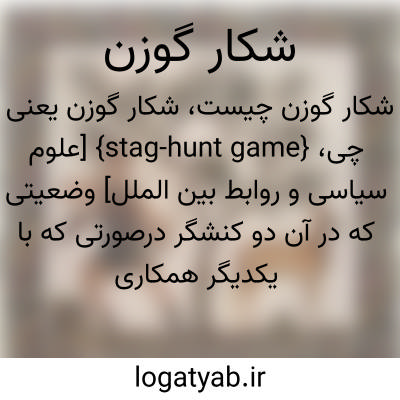{stag-hunt game} [علوم سیاسی و روابط بین الملل] وضعیتی که در آن دو کنشگر درصورتی که با یکدیگر همکاری کنند به دستاوردی بزرگ، یعنی گوزن، می رسند و درصورت عدم همکاری، هریک باید به دستاوردی کوچک، یعنی خرگوش، اکتفا کنند