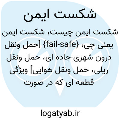 {fail-safe} [حمل ونقل درون شهری-جاده ای، حمل ونقل ریلی، حمل ونقل هوایی] ویژگی قطعه ای که در صورت شکست آن خطری برای افراد یا خللی جدی در عملکرد کلی دستگاه ایجاد نشود و آسیب به حداقل برسد