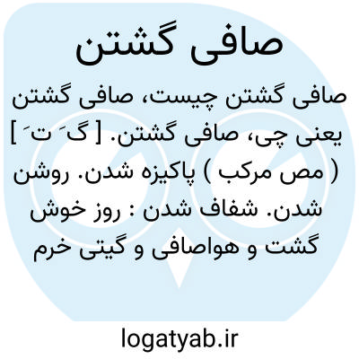 صافی گشتن. [ گ َ ت َ ] ( مص مرکب ) پاکیزه شدن. روشن شدن. شفاف شدن: